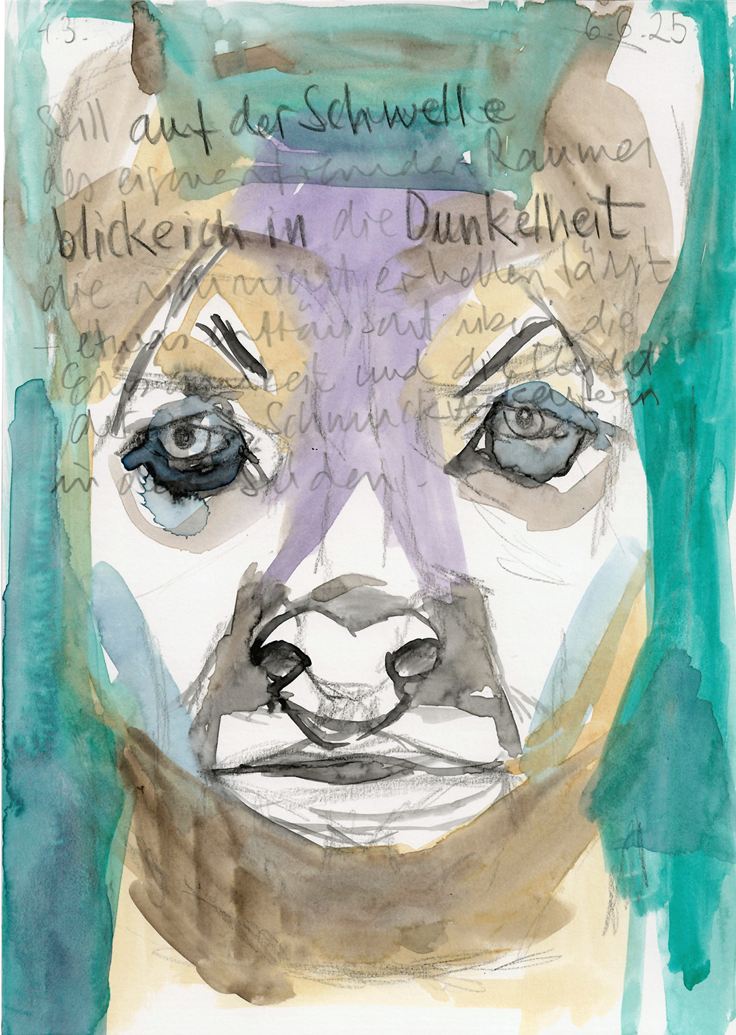 Mein Schritt müde weiter, den Schlüssel in der Hand, durch den unbelebten Hof bis zur Tür des Hauses, in dem wir vorübergehend untergekommen sind. Nach einigen Versuchen finde ich im Halbdunkel das Schlüsselloch der schweren Haustür aus vergangenen Zeiten. Mein Mann scheint im Morgengrauen noch nicht zurückgekehrt zu sein. Das Haus ist leer. Vor dem Betreten ein Blick in den düsteren Eingangsbereich des uralt wirkenden Hauses. Eine Treppe am Ende des Raumes führt in das obere Geschoss, sie ist in der Dämmerung zu erahnen. Schalter schnappen sofort zurück. Das Licht verweigert sich.
