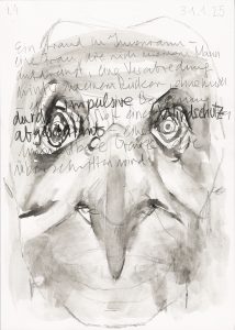 Dann war da dieses wohl bekannte Flackern: Sie nahm Raum, mein Licht wurde schmal. Wieder auf dem Gehsteig neben einer viel befahrenen Straße: mein Blick geht zu zwei Mädchen, die bei mir stehen. Erst im zweiten Moment gibt sich die raumgreifende Gefährtin zu erkennen, die irgendwie zu den Mädchen zu gehören scheint. Wie hypnotisiert gehe ich hinterher. Zu einer erhöhten Bar auf einem parkenden LKW mitten auf der Straße.